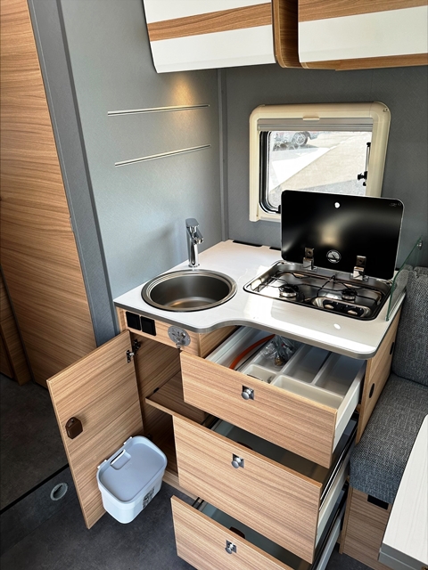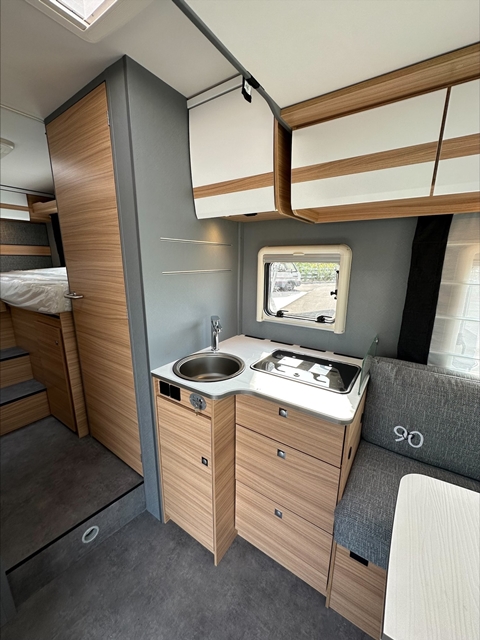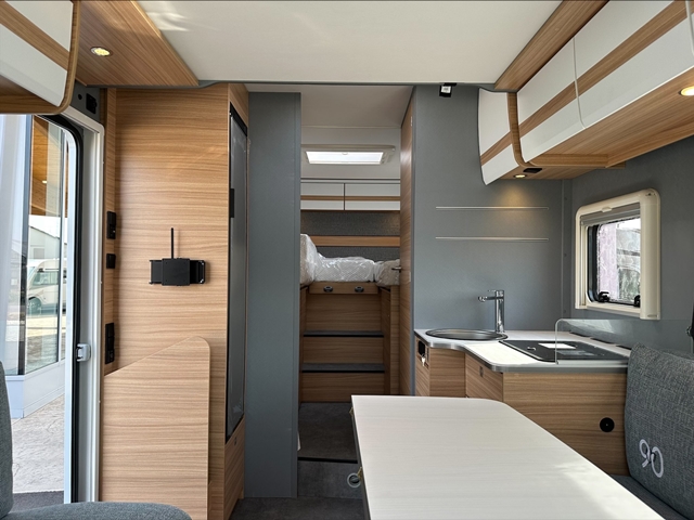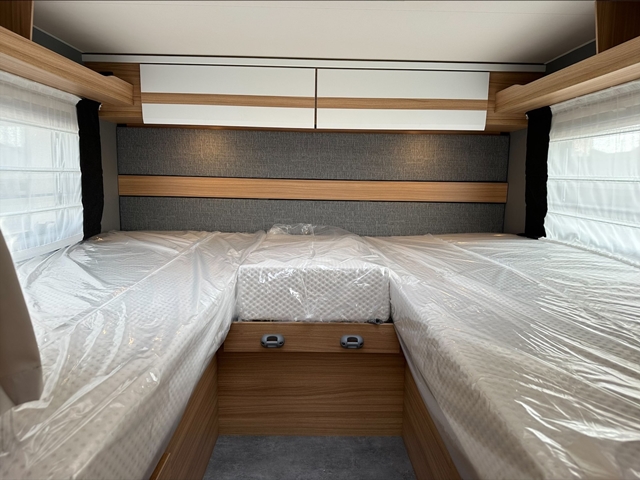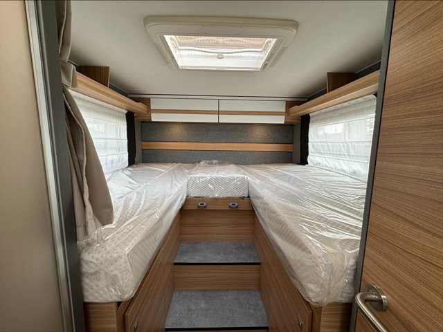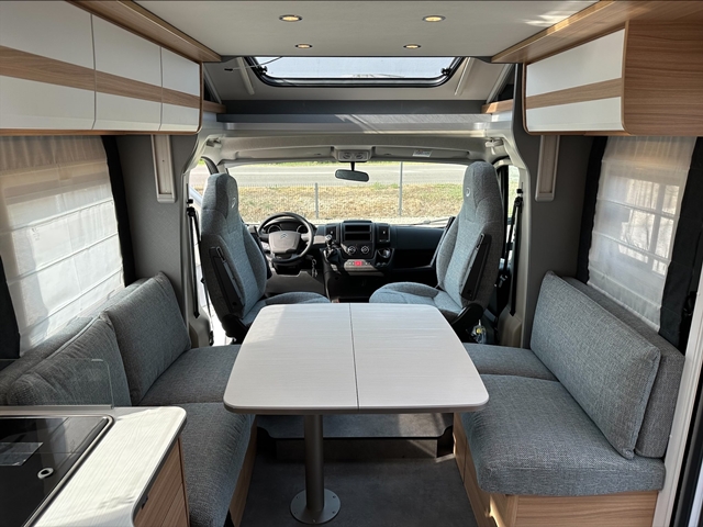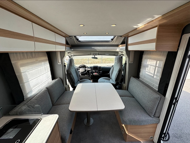 Semintegrale con dinette faccia a faccia, basculante, cucina laterale ad ‘L’, letti gemelli, bagno e doccia separati e contrapposti.