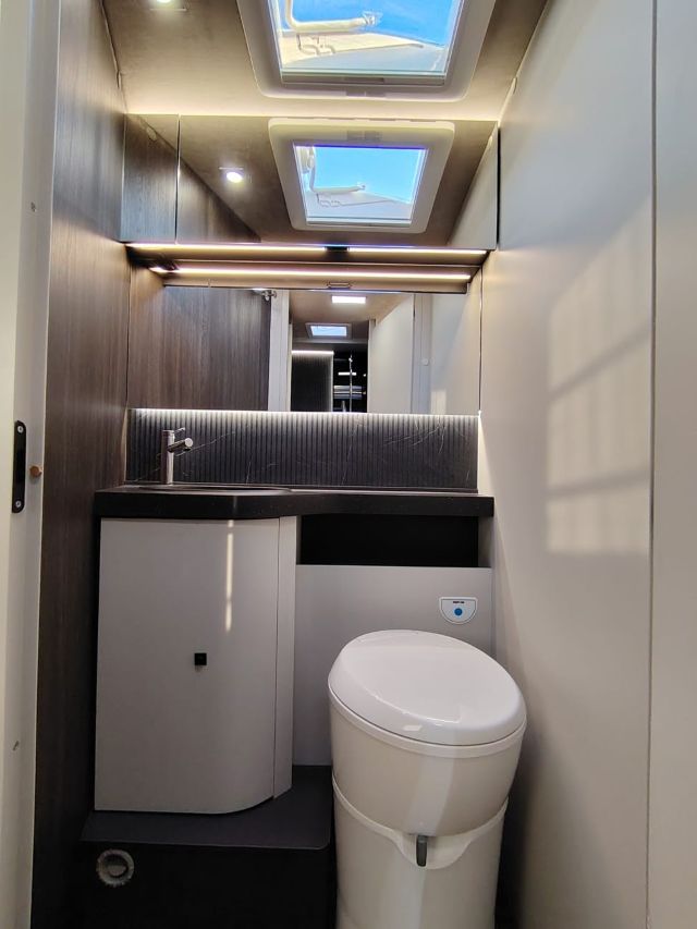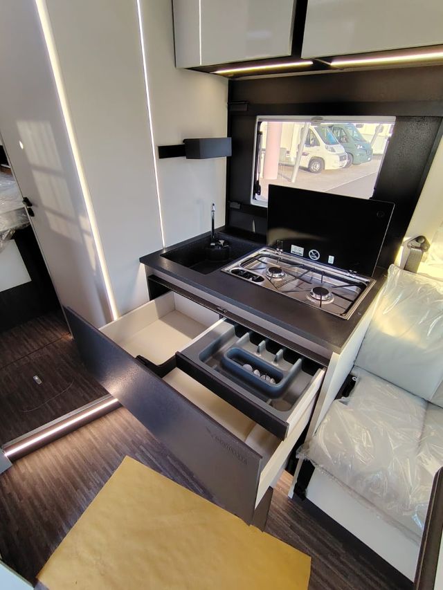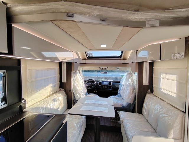 Semintegrale con dinette faccia a faccia, basculante, cucina laterale in linea, letto nautico, bagno e doccia separati e contrapposti.